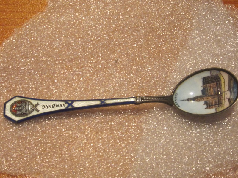 Old Coin .800 Silver Hallmark Arrow Logo Enamel Rathaus Hamburg Spoon