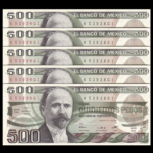 Lot 5 Pcs, Mexico 500 Pesos, 1983, P-79A, Banknote, Unc