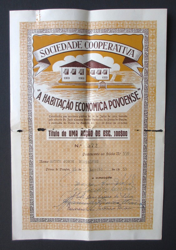 Stock/Bond: Portugal - Soc. Cooperativa A Habitação Económica Povoense, 1 Share -*Very Rare*