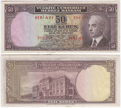 Banknote: 1942-44 Turkey 50 Kurus P#133 Almost Uncirculated