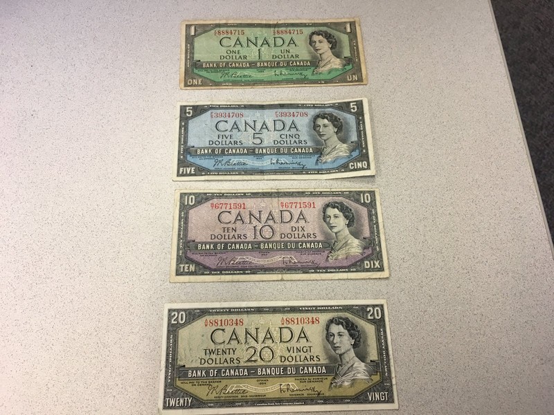 Banknote: 1954 Set Of 4 Canada Banknotes Beattie-Rasminsky $1 $5 $10 & $20