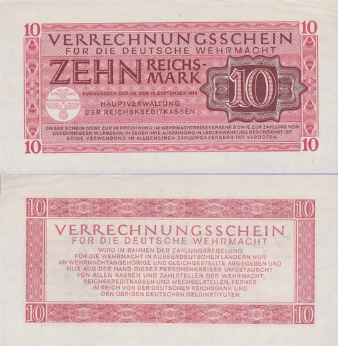 Banknote: Germany,10 Reichsmark""Wehrmacht"" Banknote,1944 About Uncirculated Cat#M-40