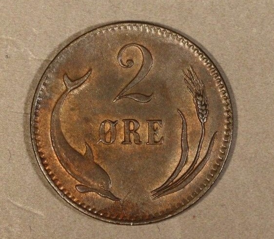 Coin: 1883 Denmark 2 Ore, Extra Nice Details ** Free U.S. Shipping **