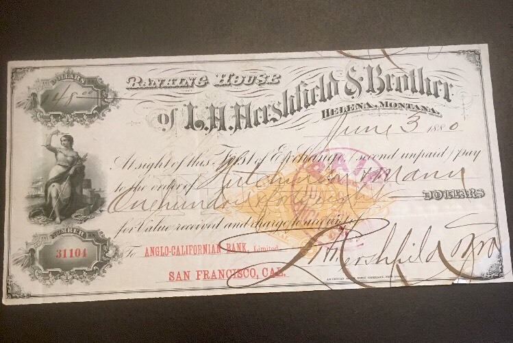 1880 Banking House Of L.H. Hershfield & Brother, Helena, Mt, San Francisco Ca.