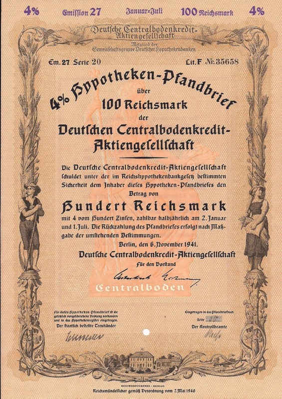 Stock/Bond: 7 Different. German 4% Mortgage Bond Hypotheken-Pfandbrief 11/6/1941