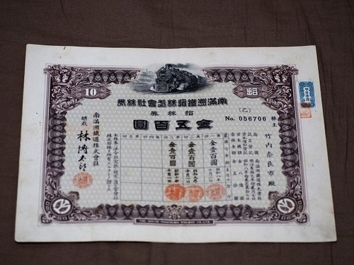 Stock/Bond: Japan Stock South Manchuria Railway Co., Ltd. 1933 Wholesale 3 Pieces Set F/S