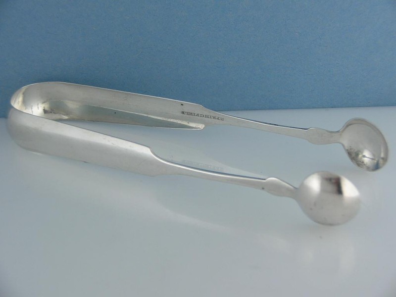 Antique: Coin Early Coin Silver Henry Sargeant Lg Serving Tongs Springfield Ma C1800S