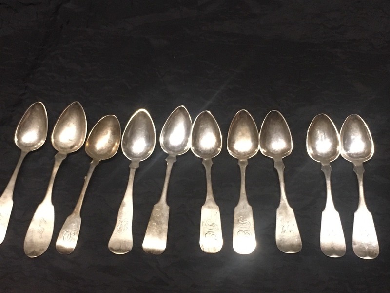 Antique: Coin Lot Of 10 Antique Coin Silver Spoons - Assorted Makers Scrap 160 Grams