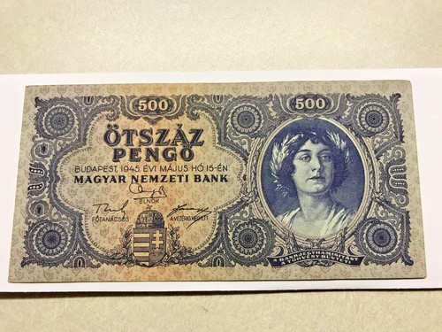 1945 Hungary 500 Pengo Error Incorrectly Spelled Nятьсот Unc. #5339