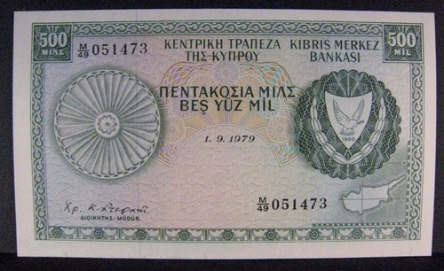 Banknote: 1979 Cyprus, Central Bank Of, 500 Mil Bank Note Crisp ** Free U.S. Shipping **