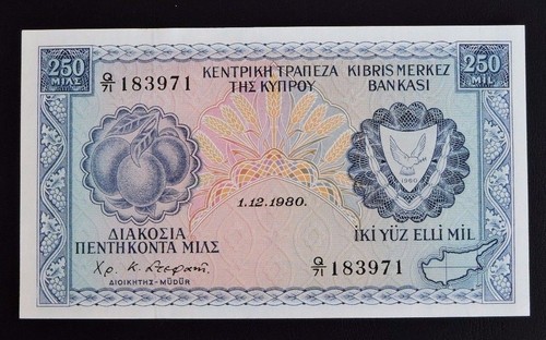 Cyprus 1980 250 Mils Banknote Crisp Unc