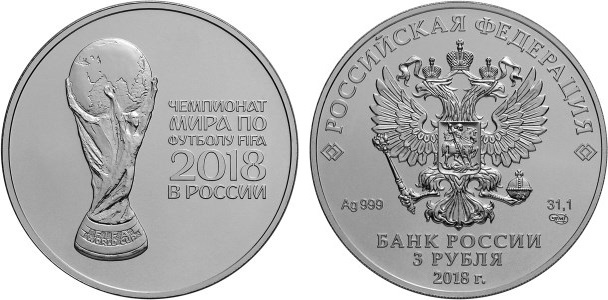 3 Rubles Russia 1 Oz Silver 2018 Fifa World Cup In Russia Football 2017 Unc