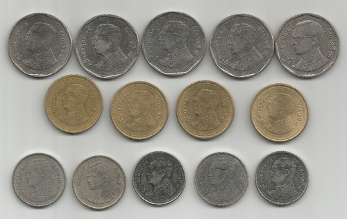 Coin: Lot Of 14 Thailand Coins 5 Baht, 2 Baht, 1 Baht
