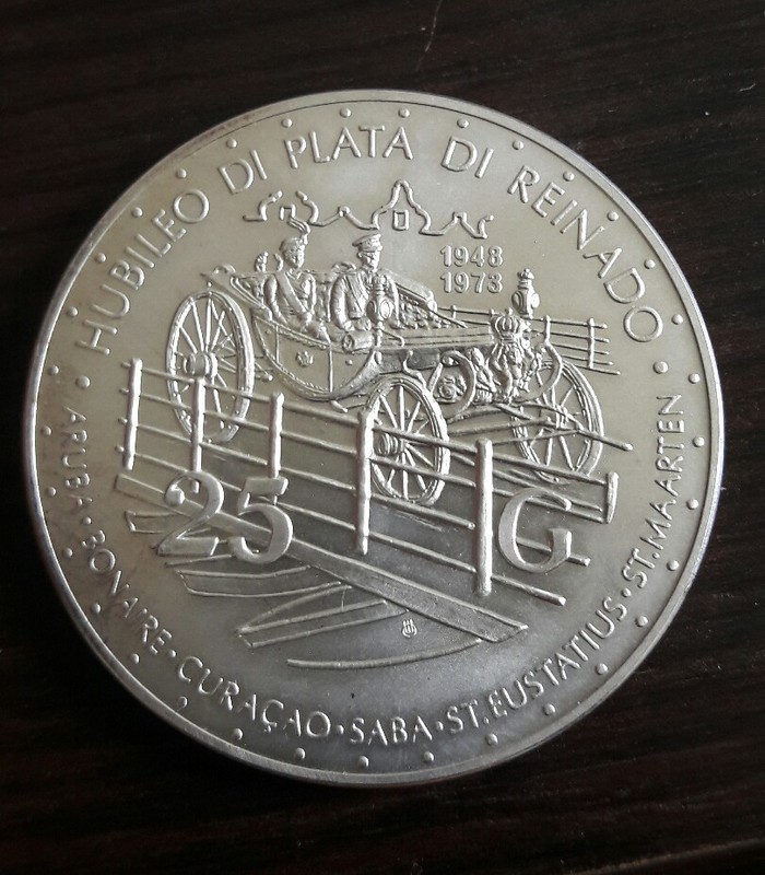 Nederland Antillen 25 Gulden Hubileo Di Plata Di Reinado 1973 Silver Rare****