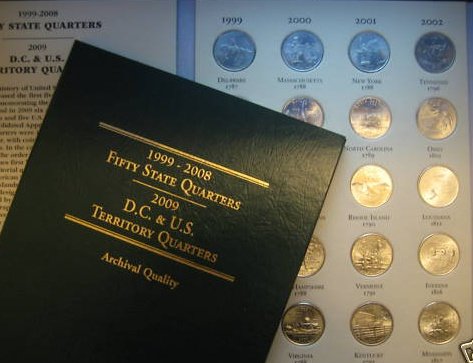Coin Set: 1999 - 2008 Complete 50-Coin State Quarters Series Set, ""P"" Mint Mark, With A Littleton State Quarter Folder