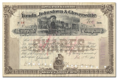 Stock/Bond: Fonda, Johnstown & Gloversville Railroad Company Stock Certificate