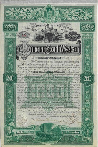 Stock/Bond: Minnesota 1888 The Winona & South Western Railway Co Bond Stock Certificate