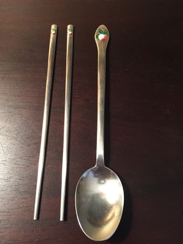 Pair Of Vintage Enamel And 800 Coin Silver Chopsticks With Matching Spoon