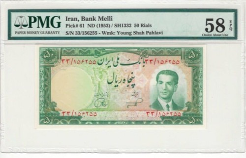 Banknote: Middle East 1953, 50 Rials, P 61, Pmg 58 Aunc Epq