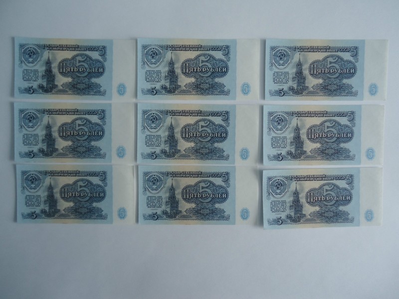 Banknote: Russia 5 Rubles 1961 Consecutive Numbers 9 Pcs Unc