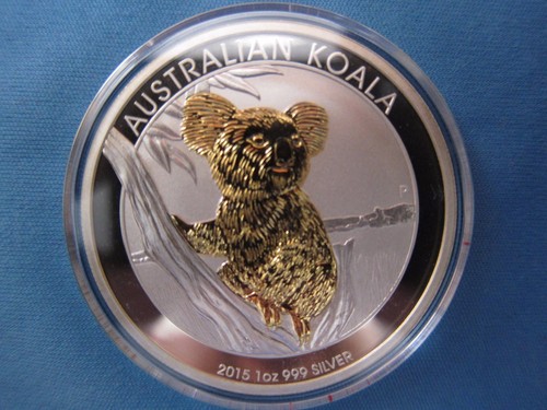 Coin: 2015 Australia $1 1Oz .999 Pure Silver Koala Gold Gilded Bu Coin