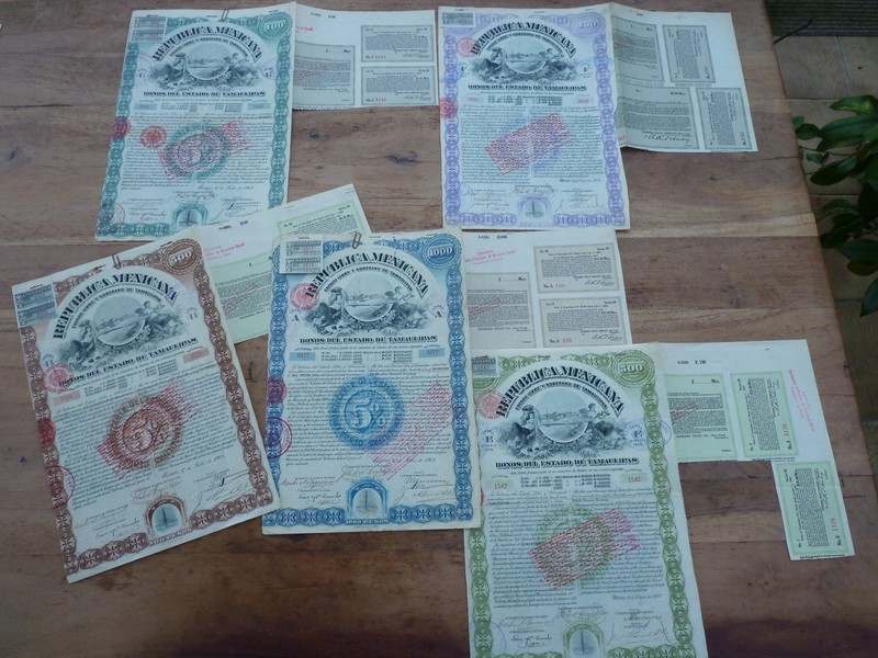 Stock/Bond: Republica Mexicana, Bonos Del Estado De Tamaulipas, With Coupons And Warrants