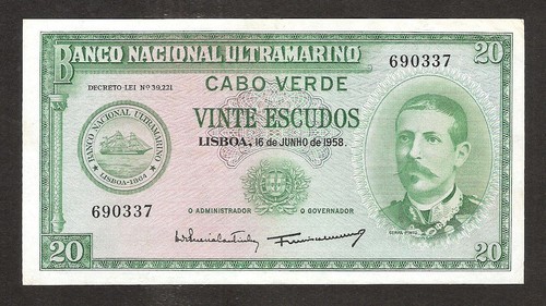 Banknote: Cape Verde - Cabo - Portugal - 20 Escudos - 1958 - Pick. 47A - Ef