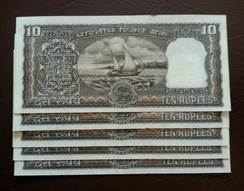 India 10 Rupees Banknotes Uncirculated 5 Pcs