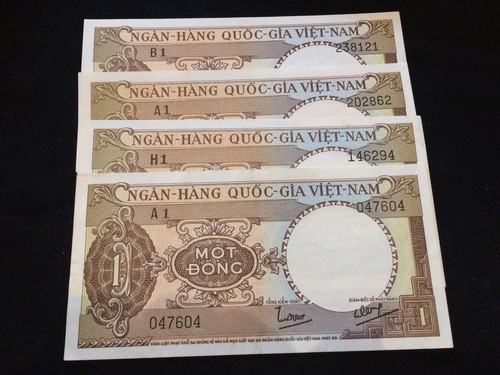 Lot Of 4 Pcs South Viet Nam 1 Dong From 1964 Banknotes P15A Circulated Aunc