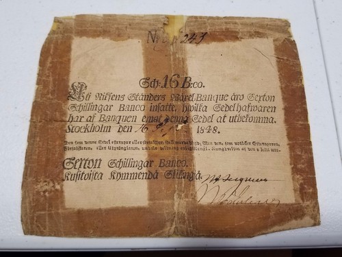 Banknote: Sweden Riksens Standers 16 Schillingar Banco 1848 Banknote - C70