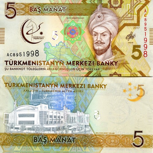 Banknote: Turkmenistan 5 Manat 2017 5Th Asian Indoor And Martial Games Comm Issue Unc