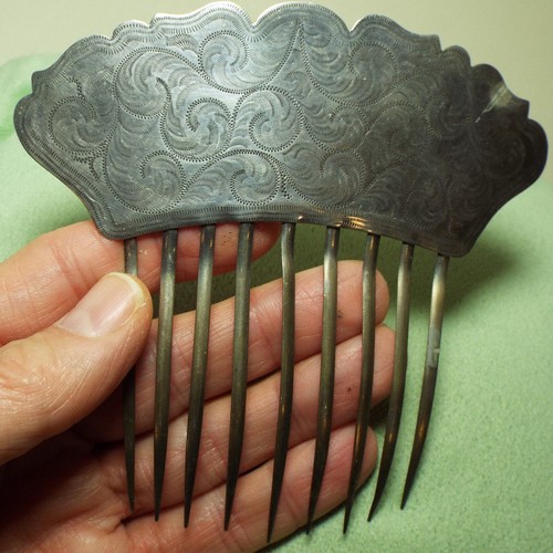 19C Victorian Coin Silver Hair Comb 1850S -70S Beautiful Estate Piece
