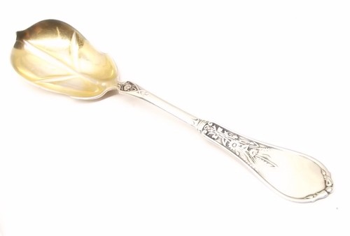 Antique Coin Silver A Stowell Sugar Spoon Shell Floral Flower 19Th Century