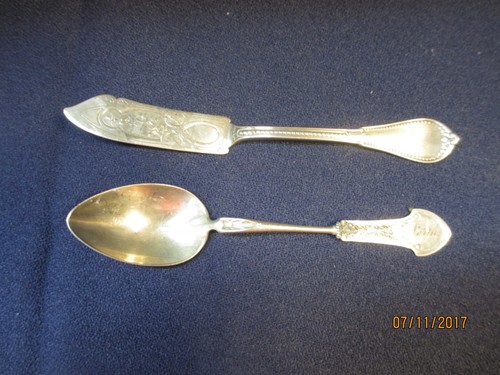 Antique: Coin Antique Early Coin Silver Butter Knife & Gorham Sterling Spoon Ca 1871
