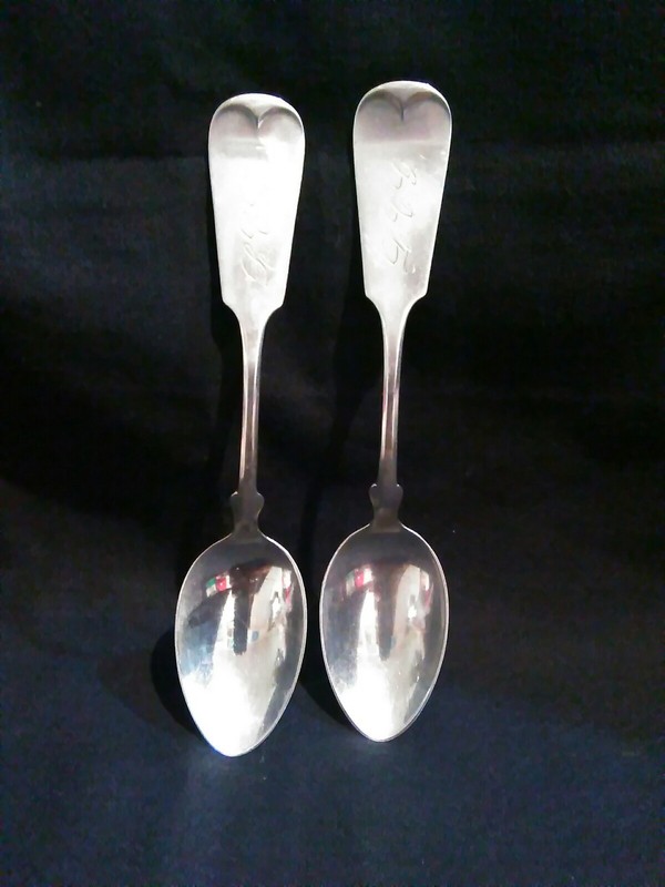 Lot Of 2 Antique Coin Silver Teaspoons*T&E Dickinson*
