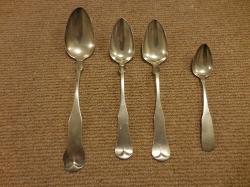 Antique: Coin Lot Of 4 Coin Silver Spoons A. W. Hall J H Hutchin & Son New Hampshire Wow