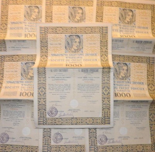 Stock/Bond: Set Of 7 ""Société Du Crédit Foncier À Varsovie 1929""