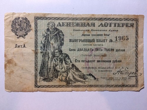 Banknote: Lottery Ticket 1923, 25000 Rubles, N 1965, Series A, Vg, Civil War, Russia, Ussr