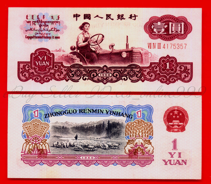 Banknote: Rare 1960 China 1 Yuan Paper Money 3 Prefix Roman With Wmk(5 Star) Unc .1Pieces