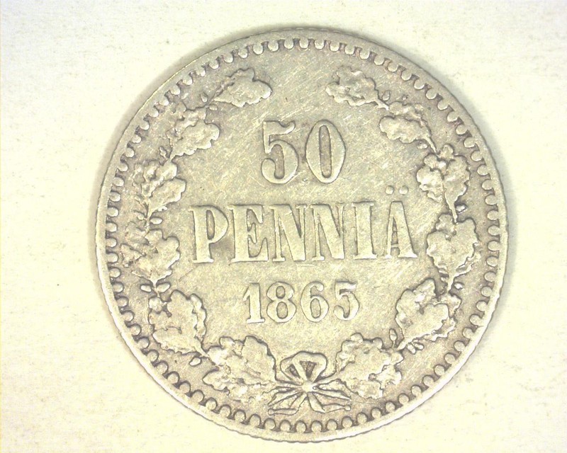 Coin: Finland 1865 Fifty Pennia Km2.1 Very Fine ~2006