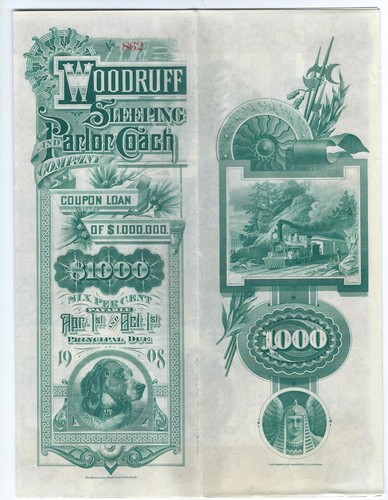 1888 $1000 Bond Issued By The Woodruff Sleeping And Parlor Coach Co. 40 Coupons