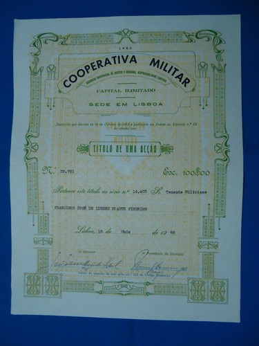 Stock/Bond: Portugal Share Cooperativa Militar 100 Escudos 1968 Look Scans