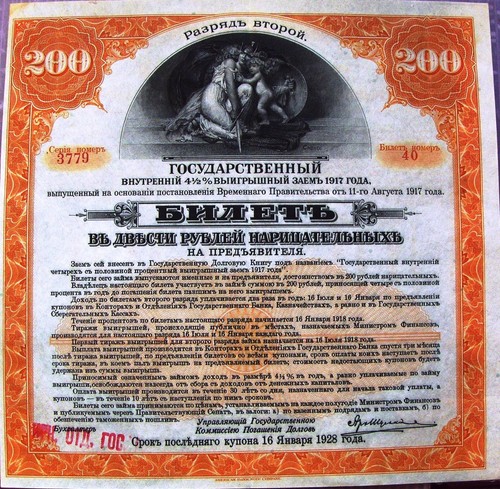 Russian Military War State Loan, 1917 Made American Banknote Company Orange