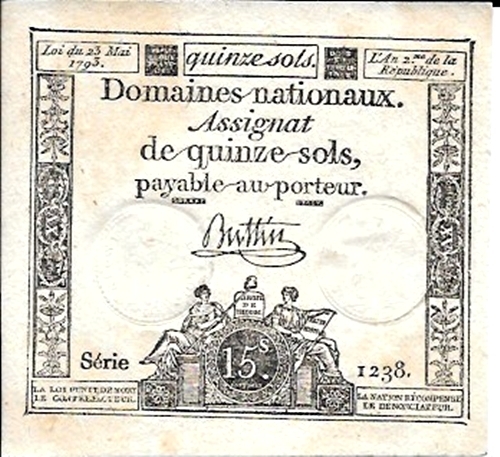 Banknote: 1793 Domaines Natioaux - France 15 Sous In Au Condition Pick: A69