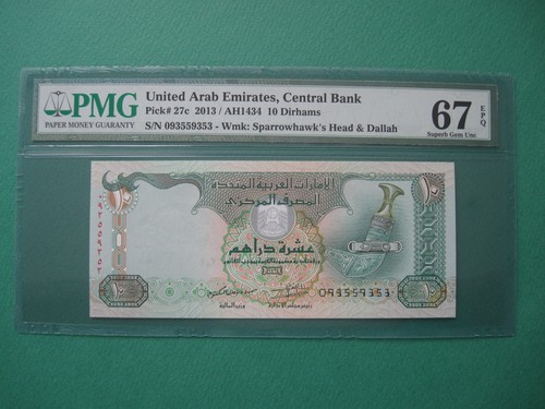 Banknote: 2013 United Arab Emirates 10 Dirhams P# 27C Pmg 67 Epq Superb Gem Unc