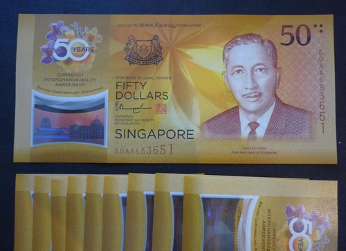 Banknote: 2017 Brunei & Singapore 50Th Anniversary Commemorative $50 Polymer Banknote Unc