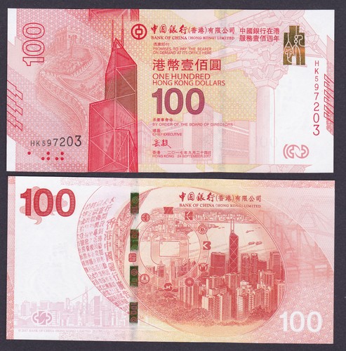 Bank Of China Hk Centenary Commemorative Banknote New Issue (2017Year)$100 Unc