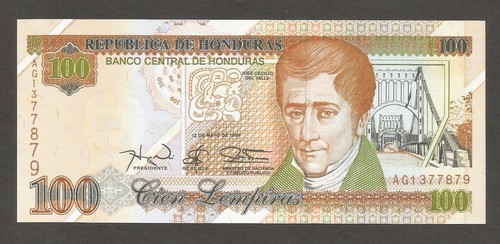 Banknote: Honduras 100 Lempiras 1994, Unc, P-77A, Bridge; First Year Of Issue