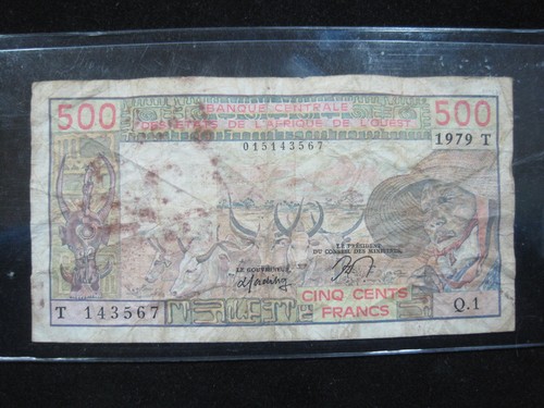 West Africa 500 Francs 1979 P105 Ivory Coast Cow 16# Banknote Paper Money