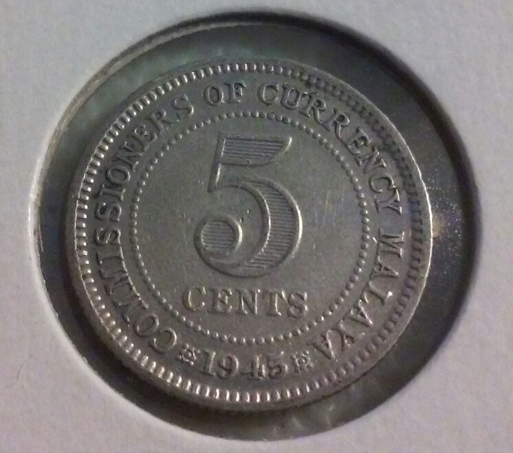 Coin: 1945 British Malaya 5 Cents Coin - Km#3A - .500 Silver (#Jan394)